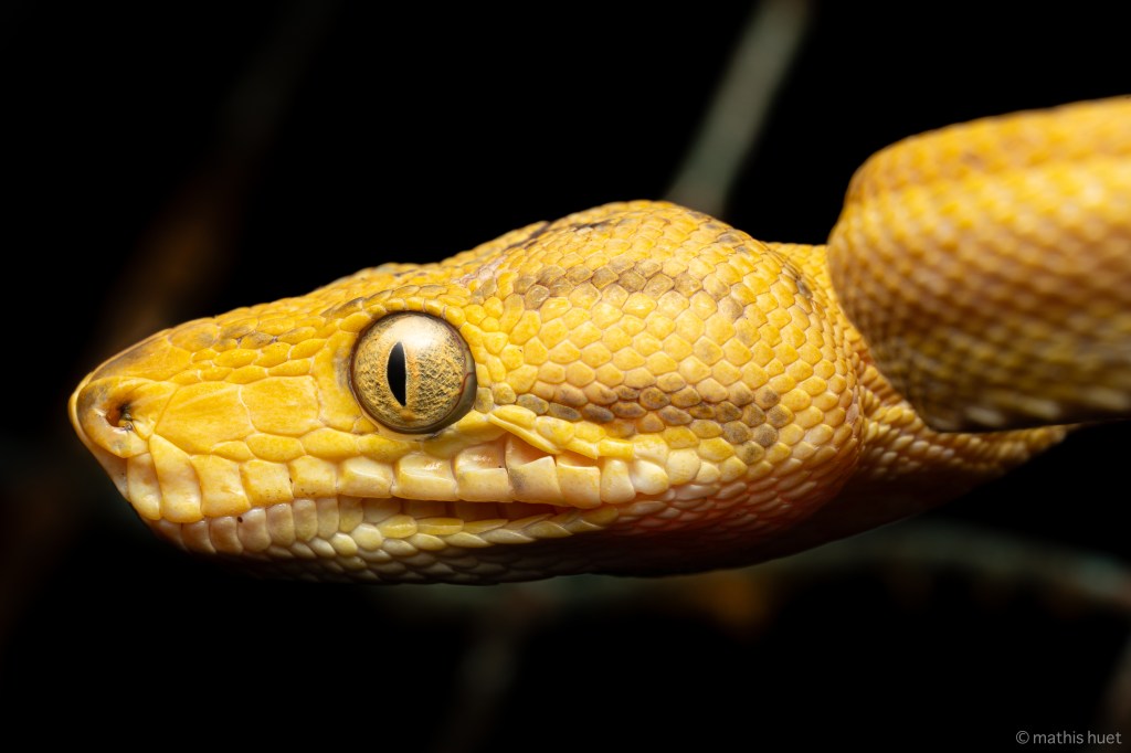 Lors de mes sorties nocturnes en Guyane, il n’est pas rare de croiser l’un des serpents les plus emblématiques de la région : le boa d’Amazonie (Corallus hortulanus). Ce magnifique serpent arboricole se distingue par sa grande variété de couleurs, allant du jaune vif au brun orangé, parfois même avec des motifs marbrés impressionnants.